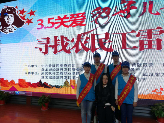 3月5日,由我校和黄陂区委宣传部、武汉相信爱公益服务中心等单位联合主办的“寻找农民工雷锋暨武汉相信爱公益服务中心助力亲情回归工程”启动仪式在黄陂举行,我校团委副书记董明与我校“董明爱心志愿服务团队”的志愿者参与启动仪式。武汉相信爱公益服务中心由我校教师、全国道德模范董明创办,在董明爱心志愿团队基础上更名,于2018年2月正式挂牌成立。该组织以关爱留守儿童为主要服务内容,以走进校园、走进家庭、走进心灵的“三走进”为载体开展关爱留守儿童的活动。仪式上同时启动了“关爱留守儿童走进家庭——助力亲情回归工程”。在我校志愿者的陪伴下,4名小学生讲述了他们父母进城务工打拼并身体力行的学雷锋、做雷锋的事迹,感动了在场的所有观众。后期我校志愿者将继续关注留守儿童,给予留守儿童更多的陪伴与温情,助力亲情回归。