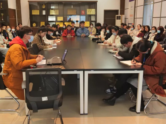 活动持续时间40分钟,由校团委学生副书记褚嘉伟主持,参会人员有张旭老师、李奇芮老师、罗丹老师、刘澜老师及团学联各部门学生干部们。
