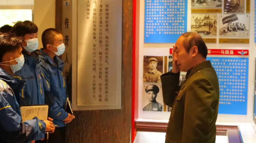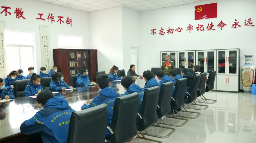 一枚枚功勋奖章,辉映着老战士激情燃烧的岁月;一摞摞报告讲稿,承载着老战士忠贞不渝的信念。看着荣誉室墙上的珍贵史料,听着张团长绘声绘色的讲解,我们的青年学子被深深地震撼到,他们聚精会神的听讲着,全神贯注的注视着,重要的地方还认真记录下来,生怕错过任何一个细节。
