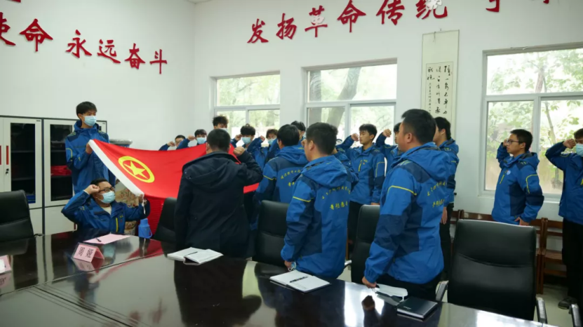 主题教育团日活动的最后,全体人员在庄严的团旗下,重温入团誓词。