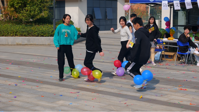 答题的方式也是充满了乐趣,有踩气球答题、一元五角等,通过游戏的方式来获取答题的数量,答对即可领取奖品,同学们兴高采烈的积极参加着。这些题目也让同学们对艾滋病有了一定的了解,例如:12月1日是“世界艾滋病日”,艾滋病的三大主要传播:血液传播、性传播、母婴传播,还有艾滋病的全名是“获得性免疫缺陷综合症”,以及英文缩写是AIDS,甚至艾滋病的潜伏期是6-8年等等一系列关于艾滋病的知识,让大家通过趣味游戏学到了防“艾”知识,更能记忆深刻。