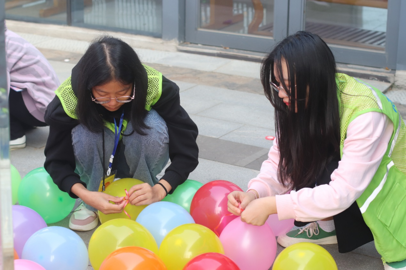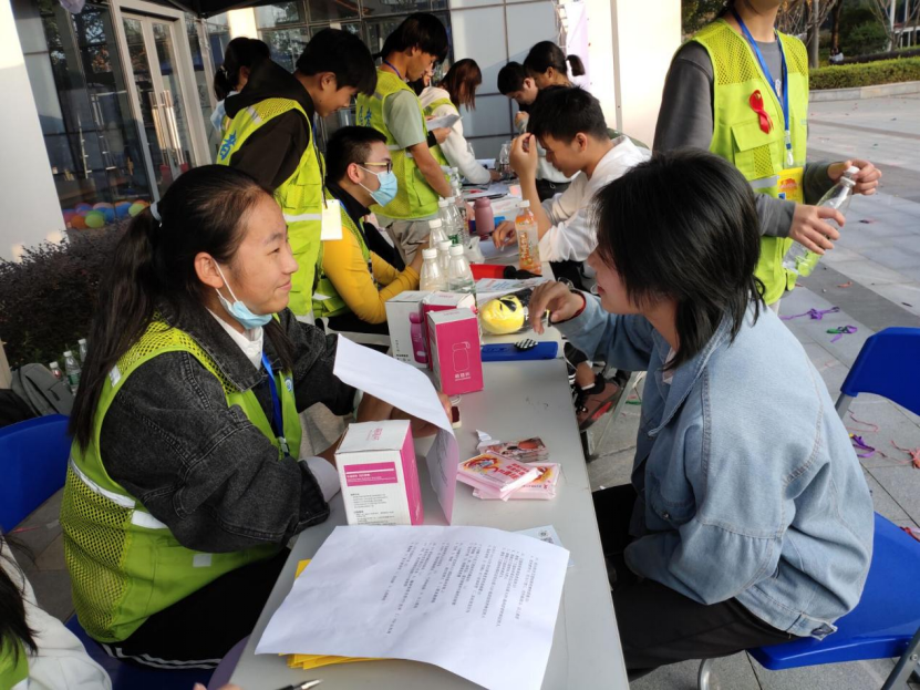 校青协的志愿者们伴随着晨曦的第一缕曙光前去武软客厅布置好场地,为迎接即将到来的防艾有奖问答活动做好准备。