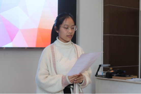 随后,校学生社团管理部部长杨紫嫣对学生社团的发展做出了简要报告,根据各学生社团的发展现状与自身特点,提出了本学年校学生社团管理部的工作计划,以“服务社团、管理社团”的宗旨,搭建起老师与社团、学生与社团之间的桥梁。