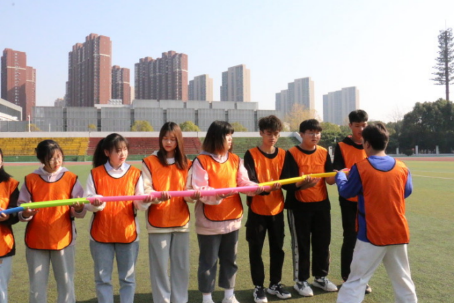 金色阳光洒满校园,青春气息扑面而来。本次拓展训练为期一天,在教练的指导下,同学们分组建立了四支队伍,他们起队名、定口号,轮番登场表演才艺,展现了良好的精神面貌。紧接着,各个队伍依次完成“挑战150分”、“急速60秒”、“百团大战”、“众人拾柴火焰高”四个部分的项目。在“急速60秒”游戏中,各队需将党的百年奋斗历程30张卡片按照正确的时间顺序排列,极大地考验了团队成员之间默契度,让所有成员感受到在游戏中收获知识的快乐,了解中国共产党的峥嵘岁月和伟大历程。在“众人拾柴火焰高”和“百团大战”项目中,需要8-10人参与其中,成员之间明确的分工、沟通和配合决定了是否能成功完成任务。最终在大家齐心协力、团结协作下圆满了完成所有任务。