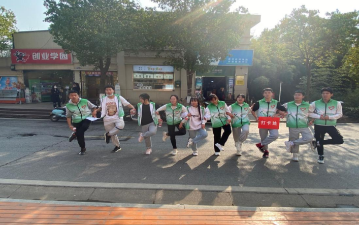 参赛队在三食堂前进行“快乐打卡”