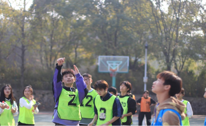 在所有打卡任务完成后,便来到了我们的最后一关,位于一号篮球场进行抱球投篮。到达场地的队伍站成一列,每人依次进行投篮,按照每队的进球数进行排名加时。在这项活动中,每支队伍均有所斩获!