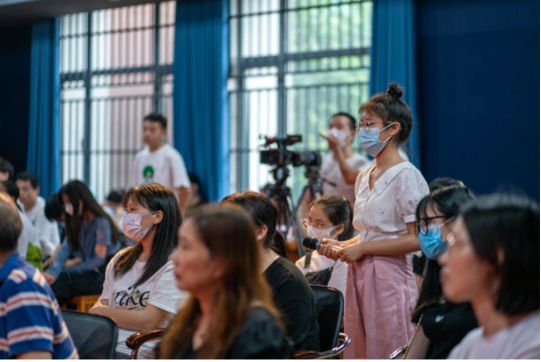 环艺2102班的陈天乐同学问道:“胡老师您现在作为中国最美志愿者,而我是艺术与传媒学院团学的志愿者,怎样才能做更好的志愿者?我想向您学习”胡昇老师很耐心地说到要做到三点“信”“敢”“达”,鼓励陈天乐同学坚持初心,当好志愿者。