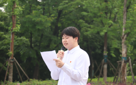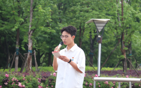 新团员代表张帅同学发言。他分享了成为共青团员的激动与喜悦,并表示,成为团员只是新的开始,在今后的学习生活中,将会一如既往保持对共青团的向往与追求,积极向党组织靠拢,用实际行动来践行团员的使命与责任,不断完善自己,向前辈榜样学习,做一名优秀的共青团员。