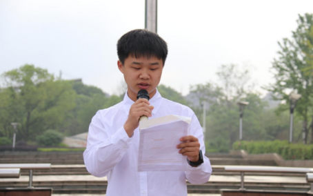 老团员代表、第十五届校园“十佳青年”创新创业好青年张松与大家共同回顾了自己入团以来的提升与成长。他表示,自进入大学生活以来,便时刻铭记着团员的自我要求,不断提升自己,获得国家级奖项7项、省级以上奖项20余项,实用新型专利1项。他鼓励新团员们要按照团员标准严格要求自己,勇挑重担、展现担当,积极参加团学活动,用一言一行永葆共青团员的先进本色。