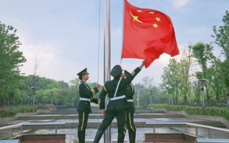 清晨的武汉倾盆大雨,而风雨却无法阻挡青年们的热情。暴雨过后,他们整齐站立在国旗下,迎接独属于他们的节日礼物。