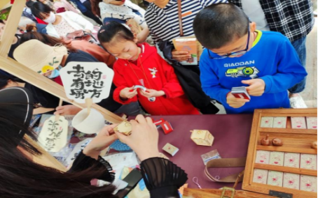 五一小长假期间,黄鹤楼公园落梅轩内熙熙攘攘,以“黄鹤楼”为主题的文创产品集市火爆开市,热闹非凡。我校数媒艺术、艺术设计、环艺专业师生开发的文创产品“口袋里的动画——手翻书”“瞪——陀螺”“动画盒子”“中国建筑文创系列”“国潮方言团扇”“楚楚动人——汉秀首饰系列”等在集市展卖,供不应求。