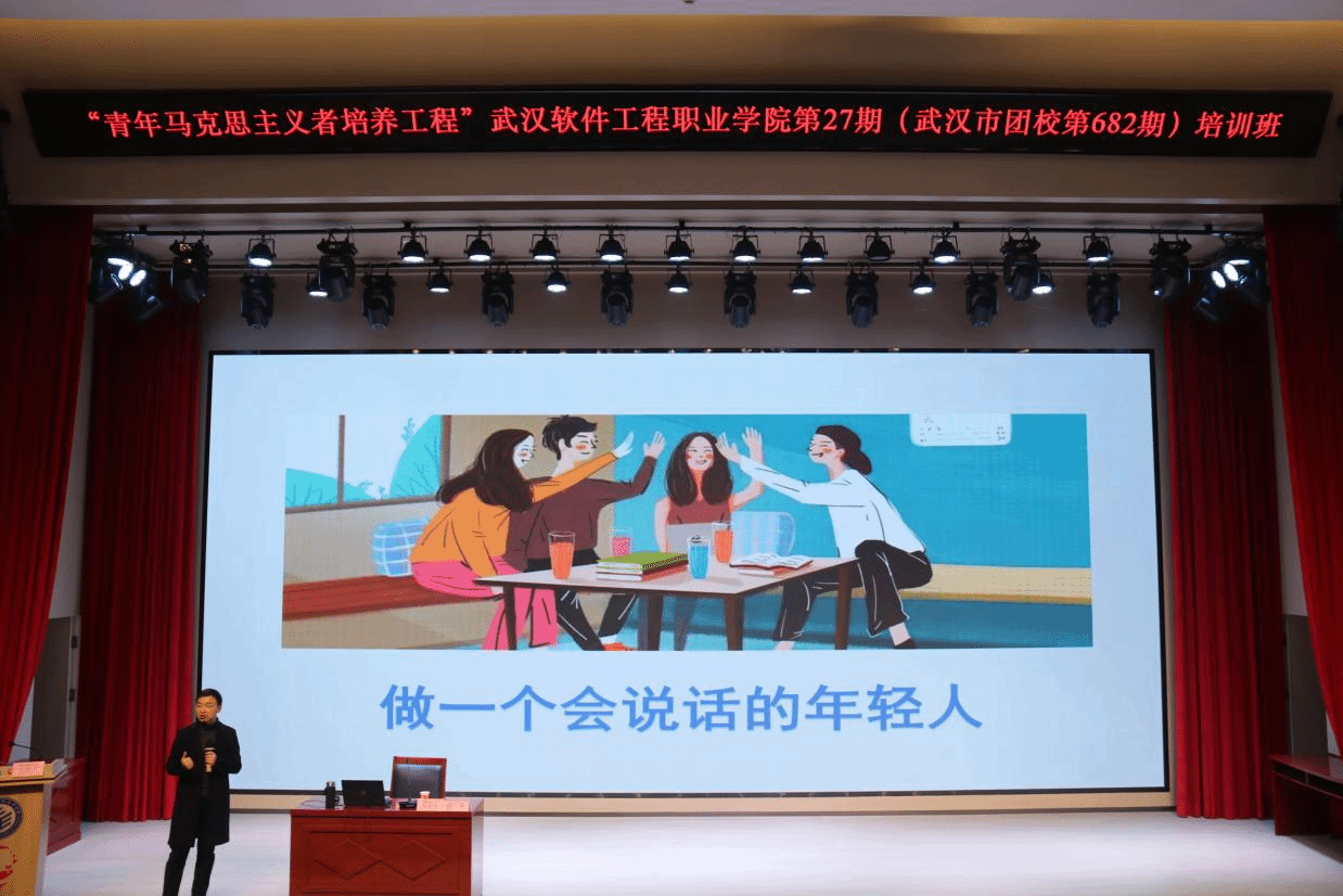 12月11日下午,我校“青马工程”第27期培训班理论学习第五讲在学术楼一号报告厅进行,武汉市团校汪凡老师以“做一个会说话的年轻人”为题,为学员们带来了一场集知识性、互动性、趣味性于一体的课程。