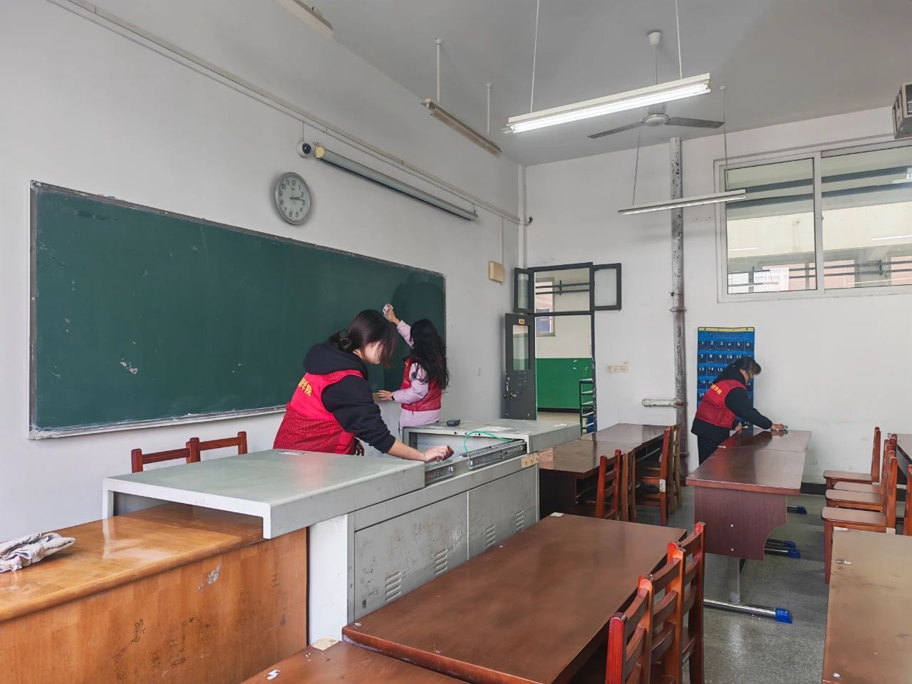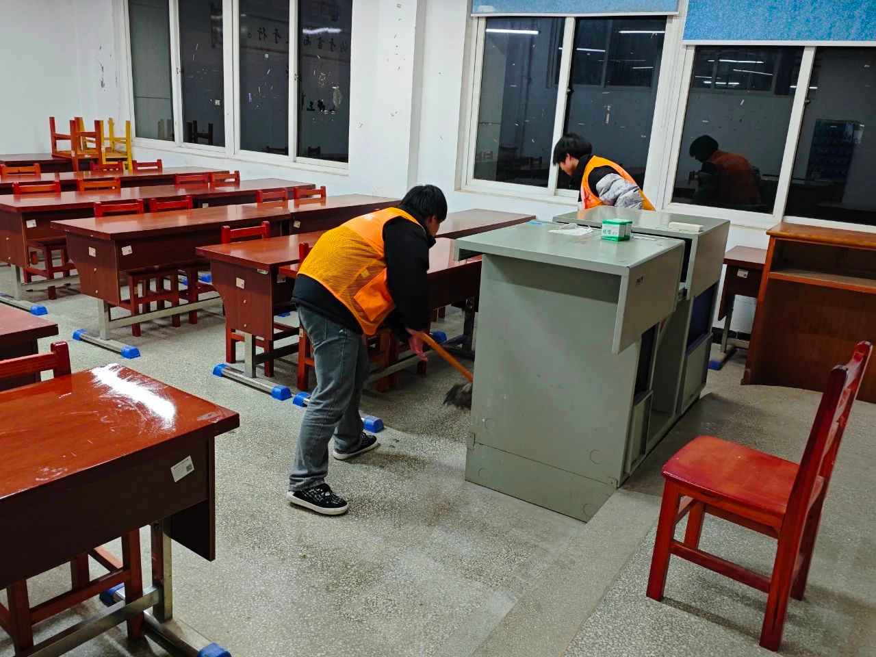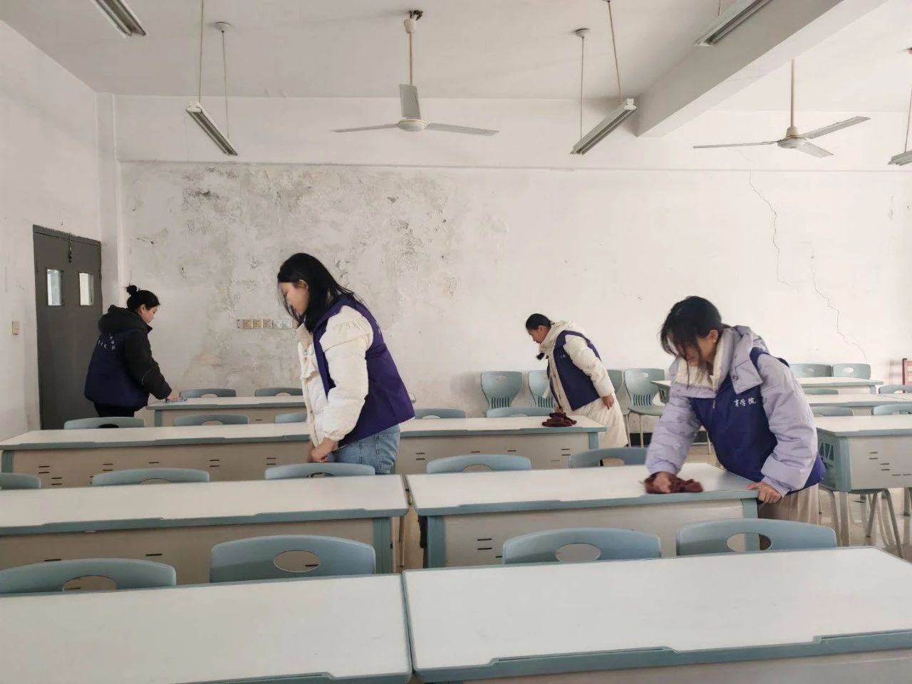 2月16日,信息学院招募已返校的学生志愿者开展教室和机房清扫活动,将劳动教育融入新学期伊始。同学们积极参与,分工协作,认真清洁教室地面、桌椅、黑板及机房设备,以实际行动践行劳动精神。