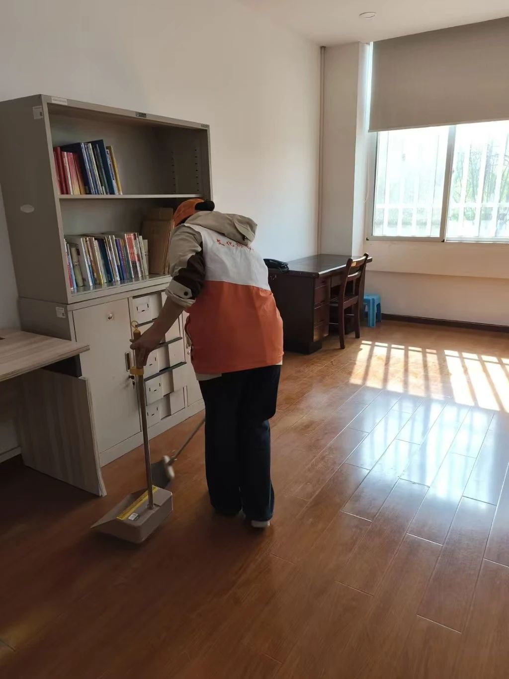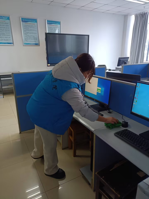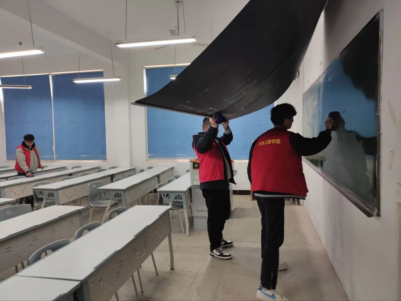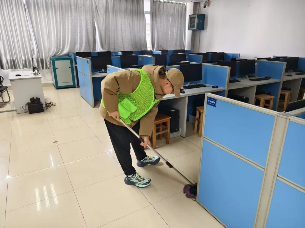2月16日,信息学院招募已返校的学生志愿者开展教室和机房清扫活动,将劳动教育融入新学期伊始。同学们积极参与,分工协作,认真清洁教室地面、桌椅、黑板及机房设备,以实际行动践行劳动精神。