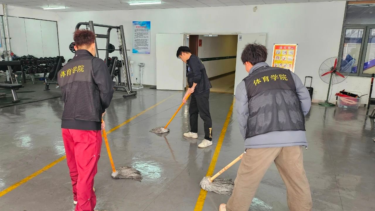 2月16日,体育学院8名学生在辅导员张楚俊老师的带领下积极开展了“体院‘净’校园”主题活动,对操场、体育馆以及体育学院实训室进行了全方位清洁打扫,助力校园环境优化提升,加强劳动育人成效。