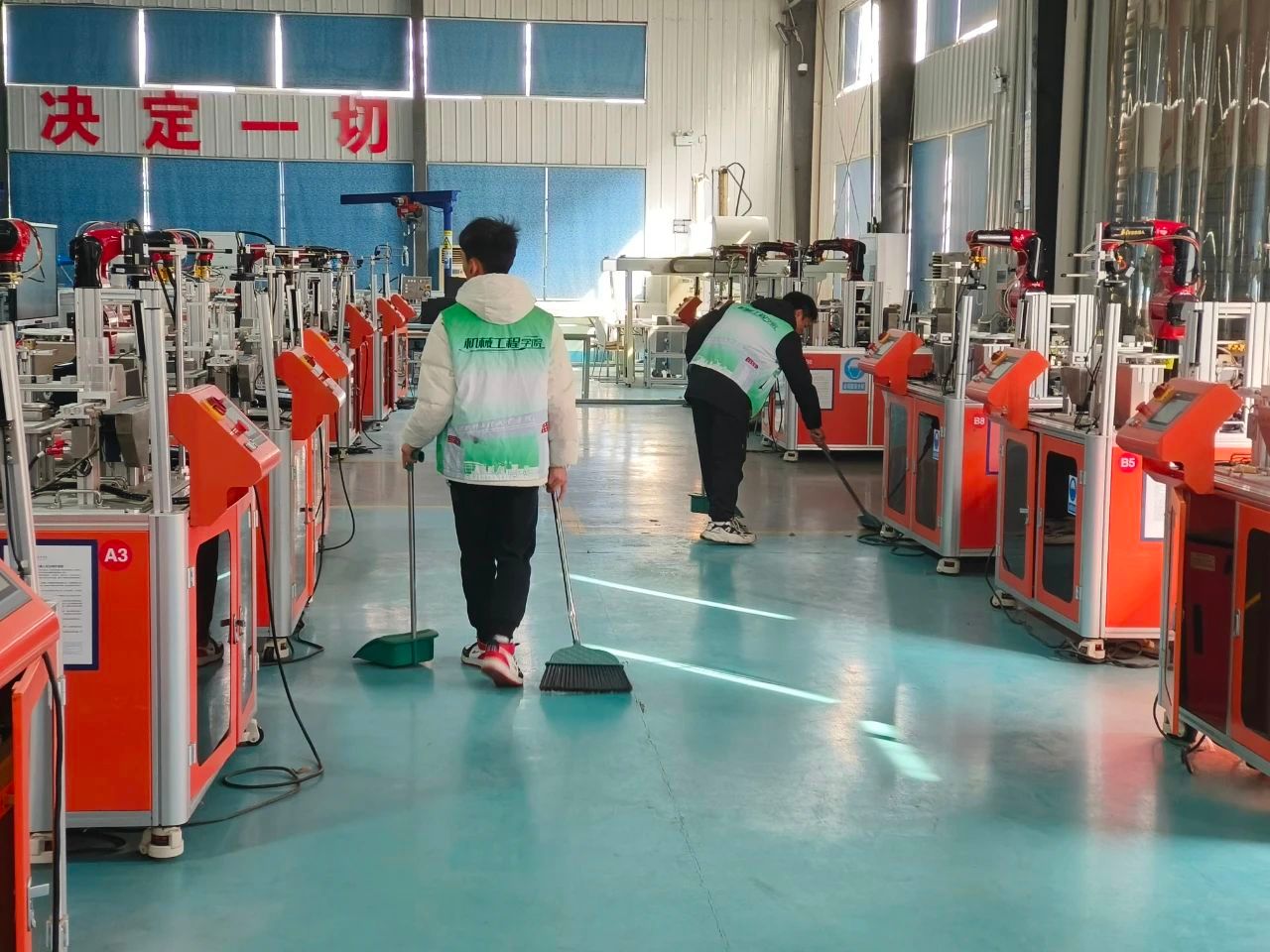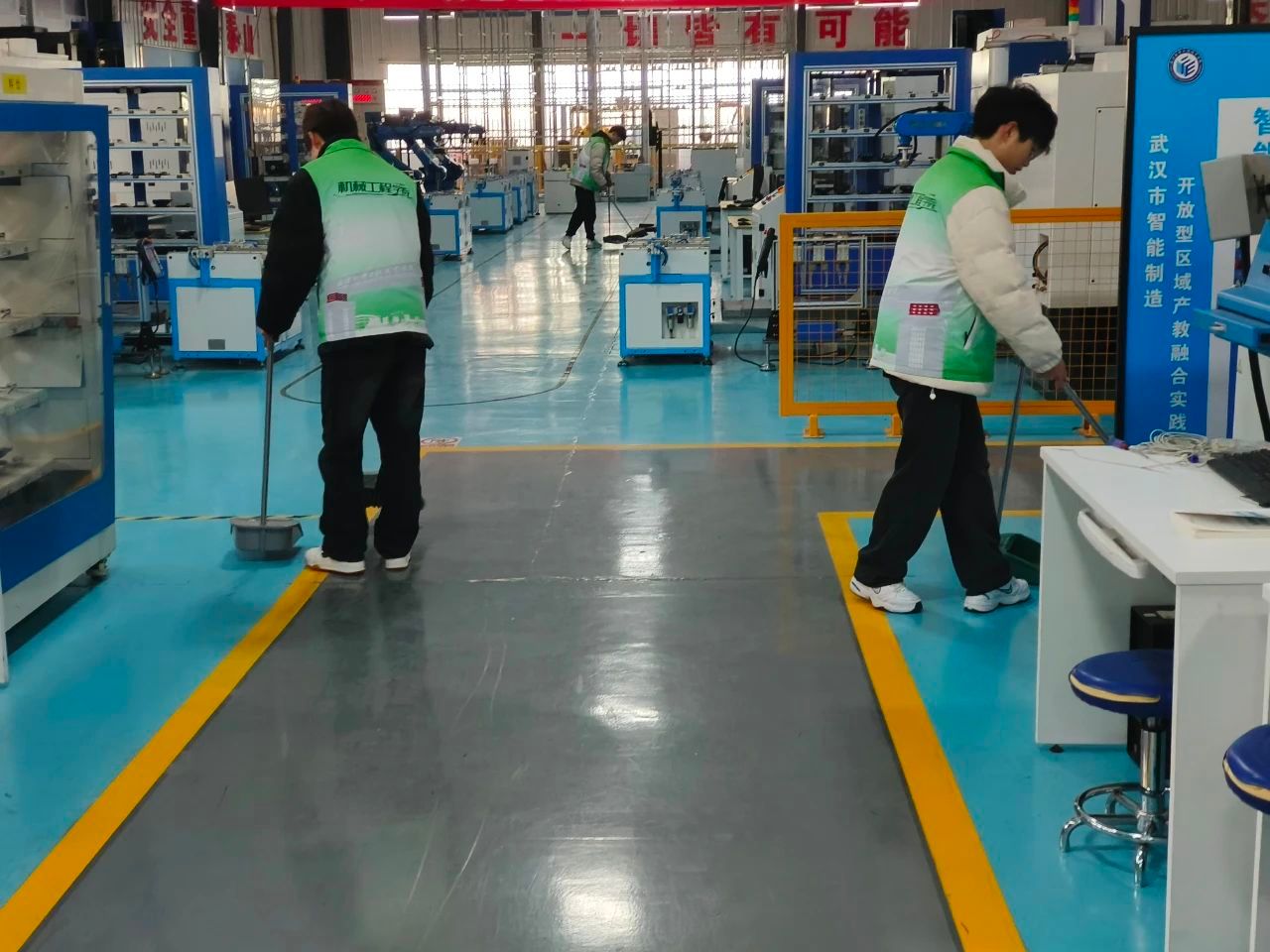 为迎接新学期的到来,2月16号上午9点到12点,机械工程学院的同学们聚焦智能工厂,拿着簸箕和扫把对地面进行全面清洁。本次活动不仅提升了实训室卫生,同时也增强了大家的环保意识与责任感。