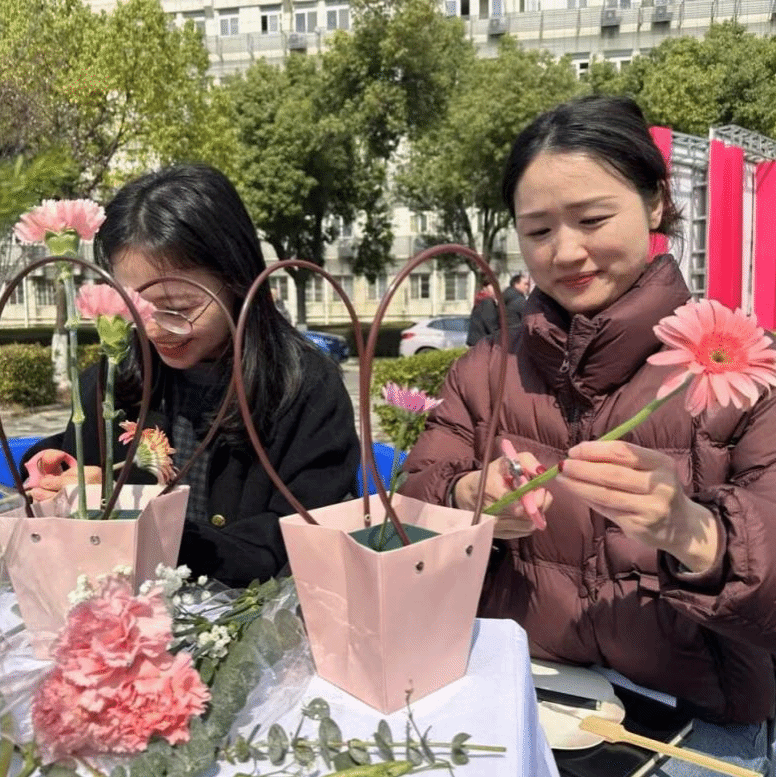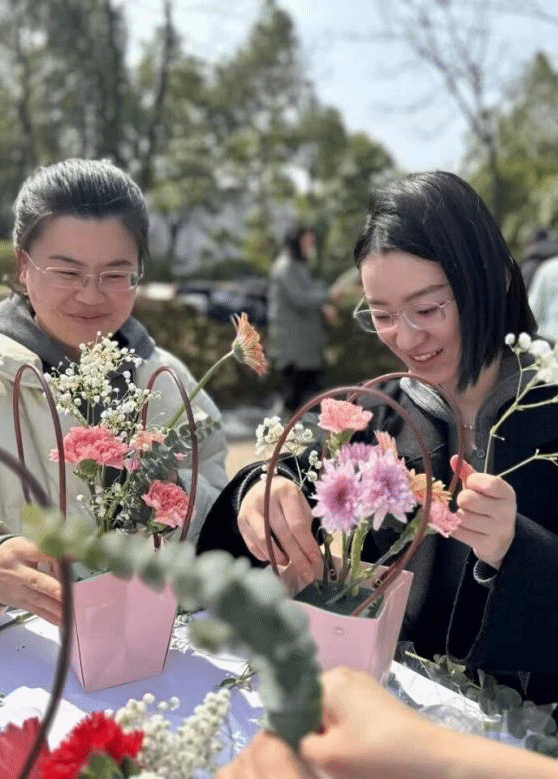 “花香雅韵,艺绽芳华”区域更是香气扑鼻,环境艺术设计专业教师张晓云现场展示插花艺术,参与的老师们在指导下亲手制作花艺作品,将自然之美融入生活。