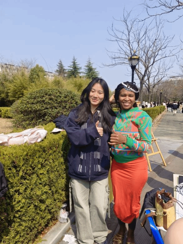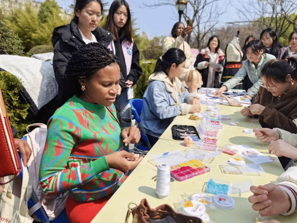 “艺海拾珠,琉璃串韵”区域别具一格,南非留学生博雅运用中国传统琉璃珠,指导同学们制作精美饰品,中西合璧的创意让人眼前一亮。