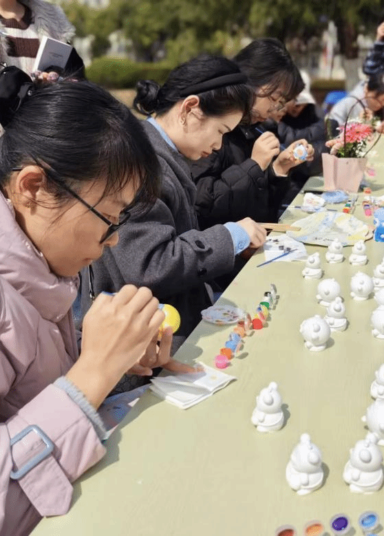 “瓷彩绘梦,巧手生花”区域则邀请绘画老师现场展示石膏娃娃涂色技艺,参与的同学们在老师的指导下,用色彩勾勒出属于自己的创意作品,为节日增添了一份独特的艺术气息。