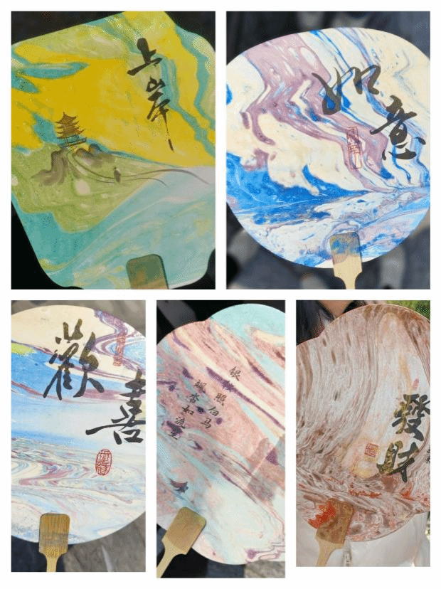 “漂漆绘扇,雅韵天成”区域为师生们提供了环保材料包,让大家亲手制作漂漆纸扇,感受非遗技艺的美感。