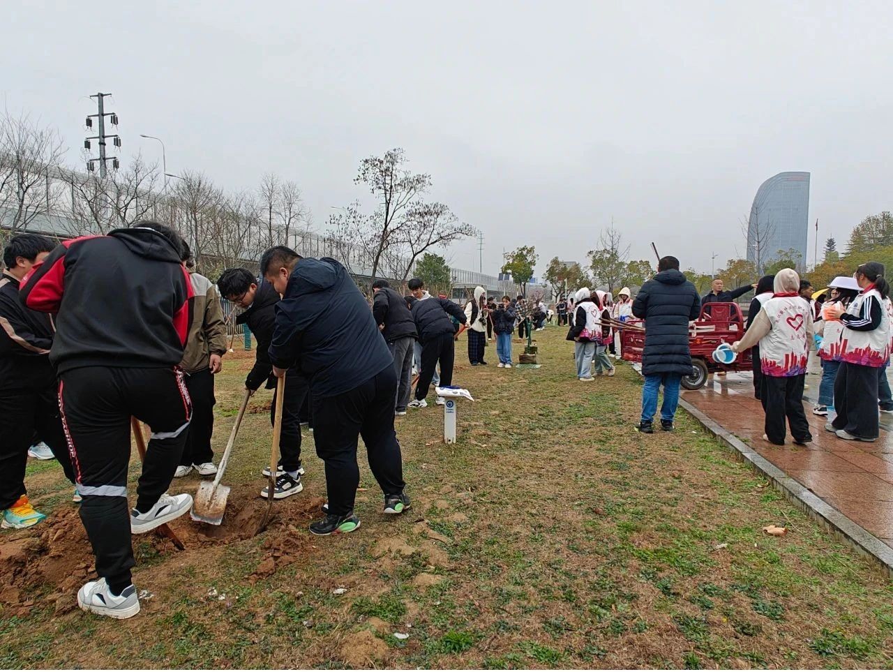 植树现场,大家热情高涨,干劲十足。他们三五人一组,默契配合,有的负责挖坑,有的负责扶苗,还有的负责填土、浇水,每一道工序都做得认真细致。大家齐心协力,将一棵棵树苗稳稳地植入土中,为这片土地增添了一抹抹生机勃勃的绿色。