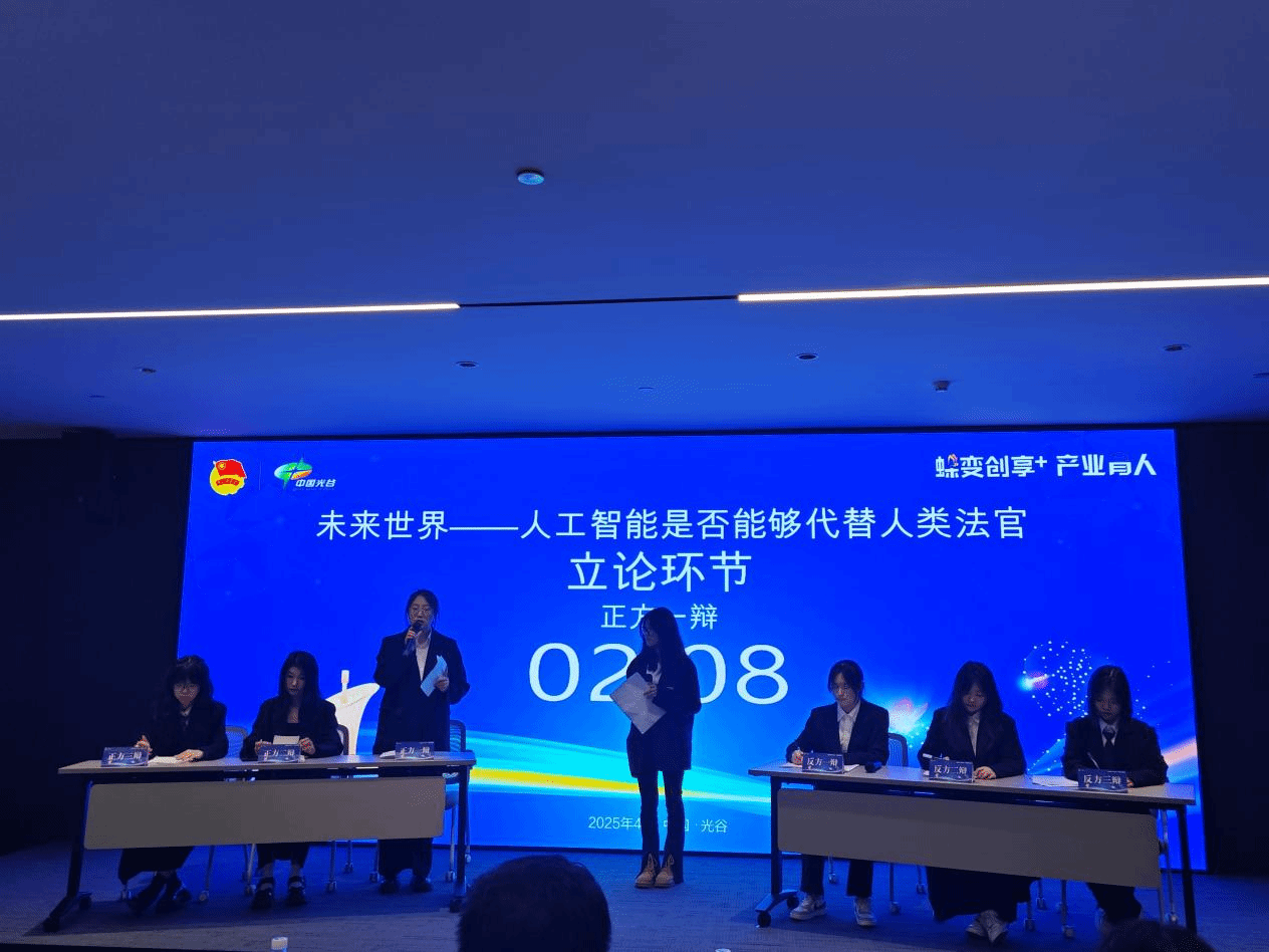 辩论中,双方引经据典、旁征博引,精准阐释法律条文,大胆推测技术趋势,凭借严密逻辑、清晰条理与生动表达,赢得嘉宾高度评价。正方辩手刘钦青、祁紫藤、许晶晶以“AI算法可实现类案同判、提升司法效率”为核心论点,深入剖析了智能合约处理、电子证据分析等人工智能技术的显著优势,有力地论证了人工智能在司法领域替代人类法官的可能性。反方辩手阮则芷、易若茜、刘立玉则针锋相对,强调“人类法官的经验裁量、情理平衡及司法温度不可替代”。