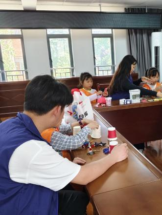 活动现场,志愿者们化身“环保导师”,以实物教学的方式,带领孩子们利用闲置纸杯、毛线、木棍等材料,制作迷你拖把小水桶。从裁剪纸杯到缠绕棉线,从组装拖把头到装饰水桶,孩子们在志愿者的耐心指导下专注操作。“大家看,废旧纸杯变成了可爱的小水桶!”志愿者一边展示成品,一边讲解“节约资源 物尽其用”的环保理念,引导小朋友们理解“垃圾是放错位置的资源”。通过活动,不仅锻炼了孩子的动手能力,还让他们学会了珍惜资源、积极劳动的意识。