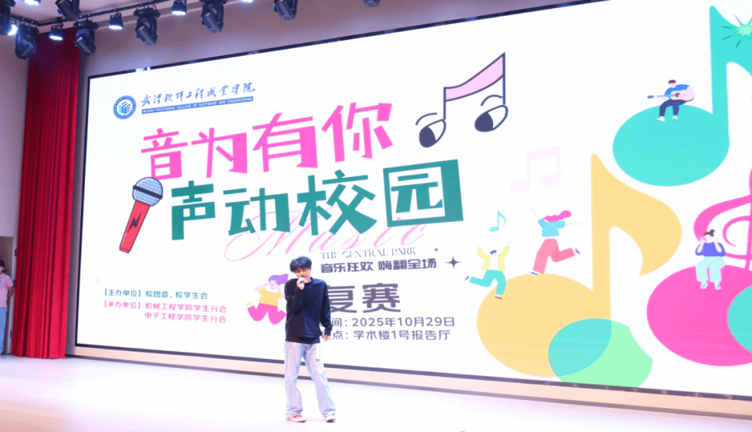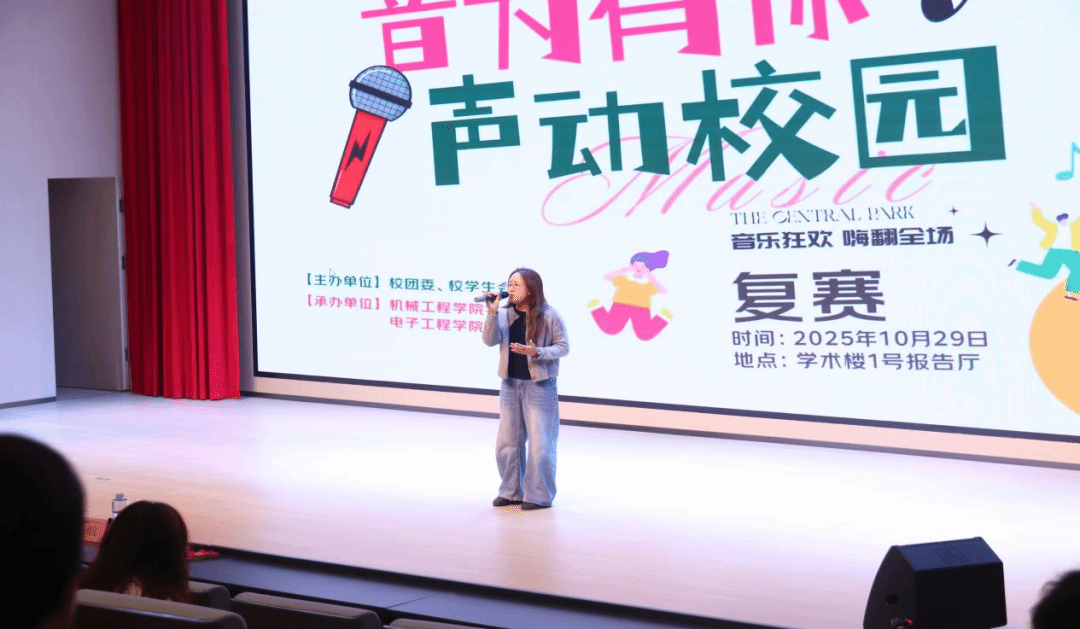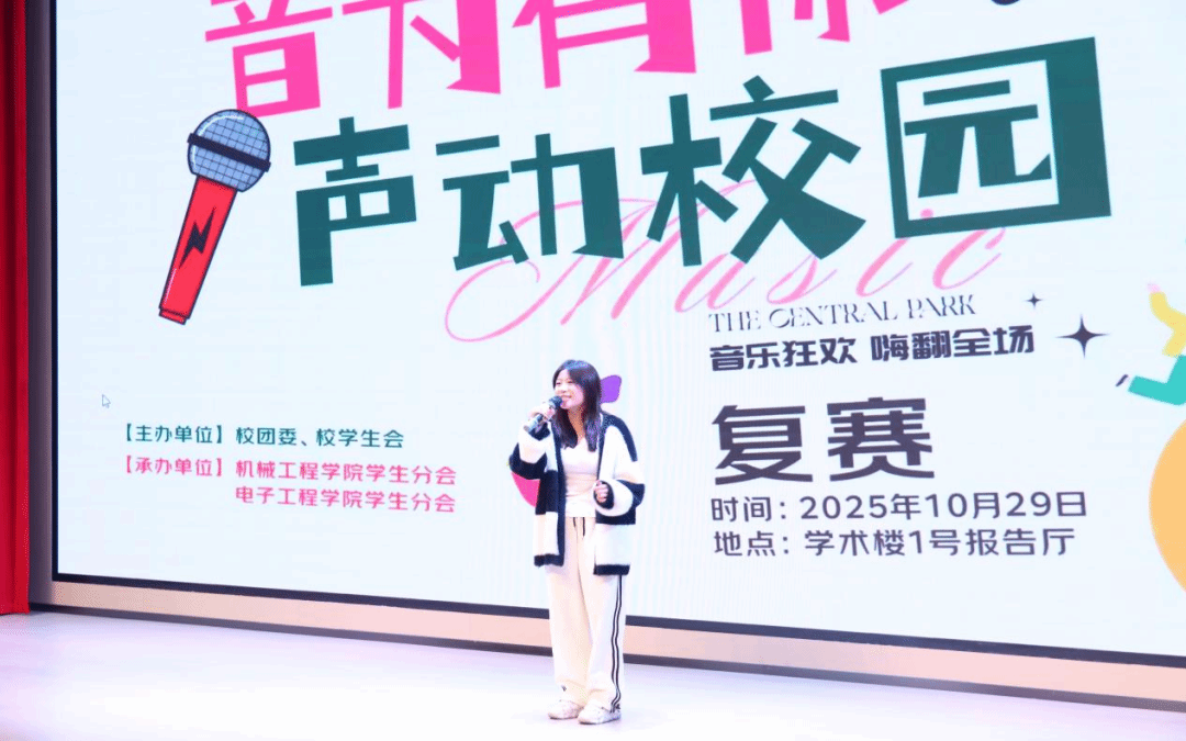 10月29日,2025“音为有你,声动校园”校园歌手大赛复赛在学术楼一号报告厅火热开赛。来自全校各学院的78名选手齐聚舞台,围绕“青春逐梦”“经典永流传”“原创心声”三大主题展开激烈角逐,最终25名选手脱颖而出,成功晋级决赛。