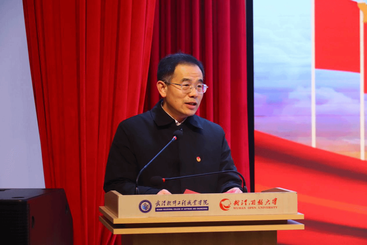 校党委书记蒋兴鹏在开班仪式上讲话。他指出,本期青马班的开班,正值“十五五”规划建议发布的重要时期,既是学校深化“大思政”教育体系的重要举措,更是深入学习贯彻党的二十届四中全会的生动实践。针对本期学员,他提出三点希望与要求:一要铸牢信仰之基,做忠诚坚定的追光者,要珍惜学习机会,沉下心读原著、学原文、悟原理,从党的创新理论中汲取信仰力量,从武汉红色基因中传承奋斗精神;二要锤炼过硬本领,做知行合一的实干者,要紧扣武汉发展新质生产力的战略需求,将理论学习与专业实践深度融合,把课堂所学转化为服务“中国软件名城”建设、加快推进武汉数字经济高质量发展的实际本领,为中国式现代化武汉实践注入青春动能;三要涵养高尚品德,做示范引领的先行者,要时刻以高标准严格要求自己,在校园里当先锋、在社会上作表率,展现新时代武软青年的良好风貌。同时,他要求校团委及相关职能部门、各学院团组织持续优化培养模式,助力学员成长成才,让青马工程真正成为锻造青年政治骨干的“大熔炉”。