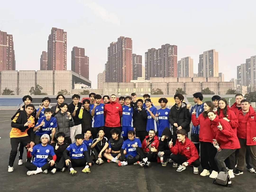 足球社与俄罗斯研学同学开展足球比赛切磋球技,促进了中俄友谊。