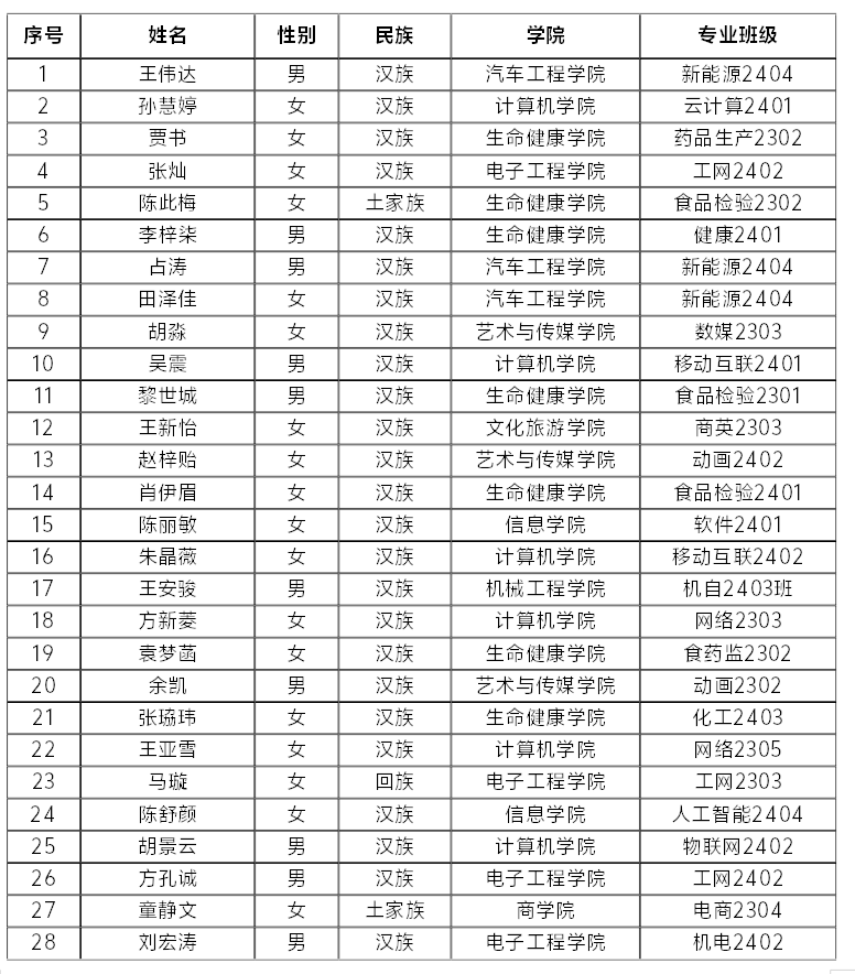 根据《中国共产主义青年团章程》及发展团员相关通知要求,经过本人申请、团组织民主推荐和培养教育考察,校团委审核,拟确定王伟达等305名学生为2024-2025学年度第二学期新发展团员,现予以公示,名单如下: