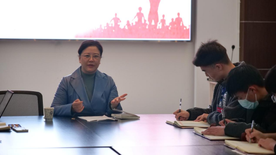 会议第二项由周娅书记来带领同学们共同学习和解读党的十九届六中全会精神。周书记强调了要全面贯彻习近平新时代中国特色社会主义思想,大力弘扬伟大建党精神,勿忘昨天的苦难辉煌,无愧今天的使命担当,不负明天的伟大梦想,以史为鉴、开创未来,埋头苦干、勇毅前行,为实现第二个百年奋斗目标、实现中华民族伟大复兴的中国梦而不懈奋斗。