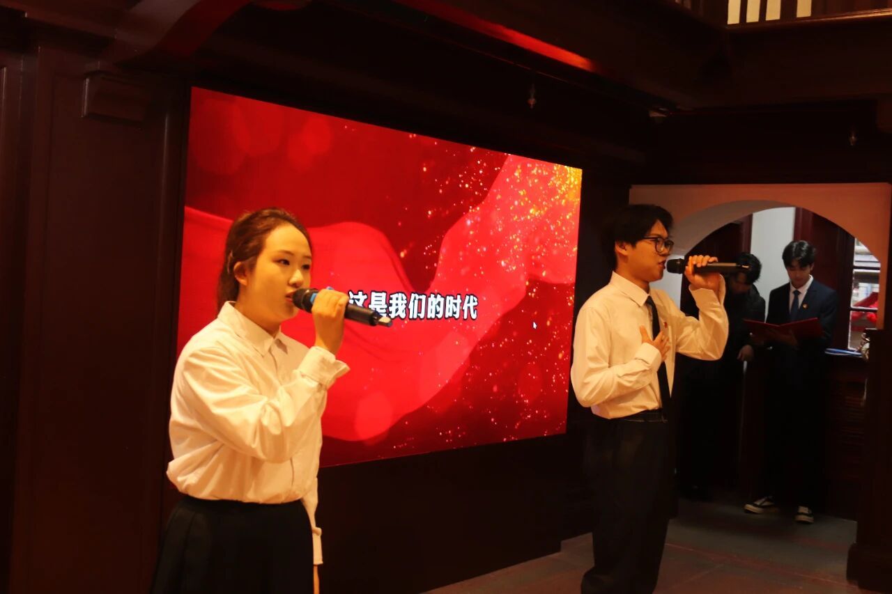 我校师生代表现场表演了诗朗诵《向太阳》、情景讲述《陈怀民:抗战烽火中的绝恋与忠魂》以及歌曲《强国一代有我在》。精彩的演绎、嘹亮的歌声,重温了那段战火纷飞中感人至深的英雄故事,也为接下来的揭牌仪式预热。