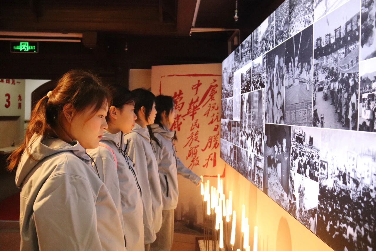 活动伊始,双方领导和师生代表在纪念馆讲解员的带领下,共同参观“烽火流金 江城壮歌——武汉抗战遗址展”。通过文物史料重温革命历史,在沉浸体验中感悟初心使命。