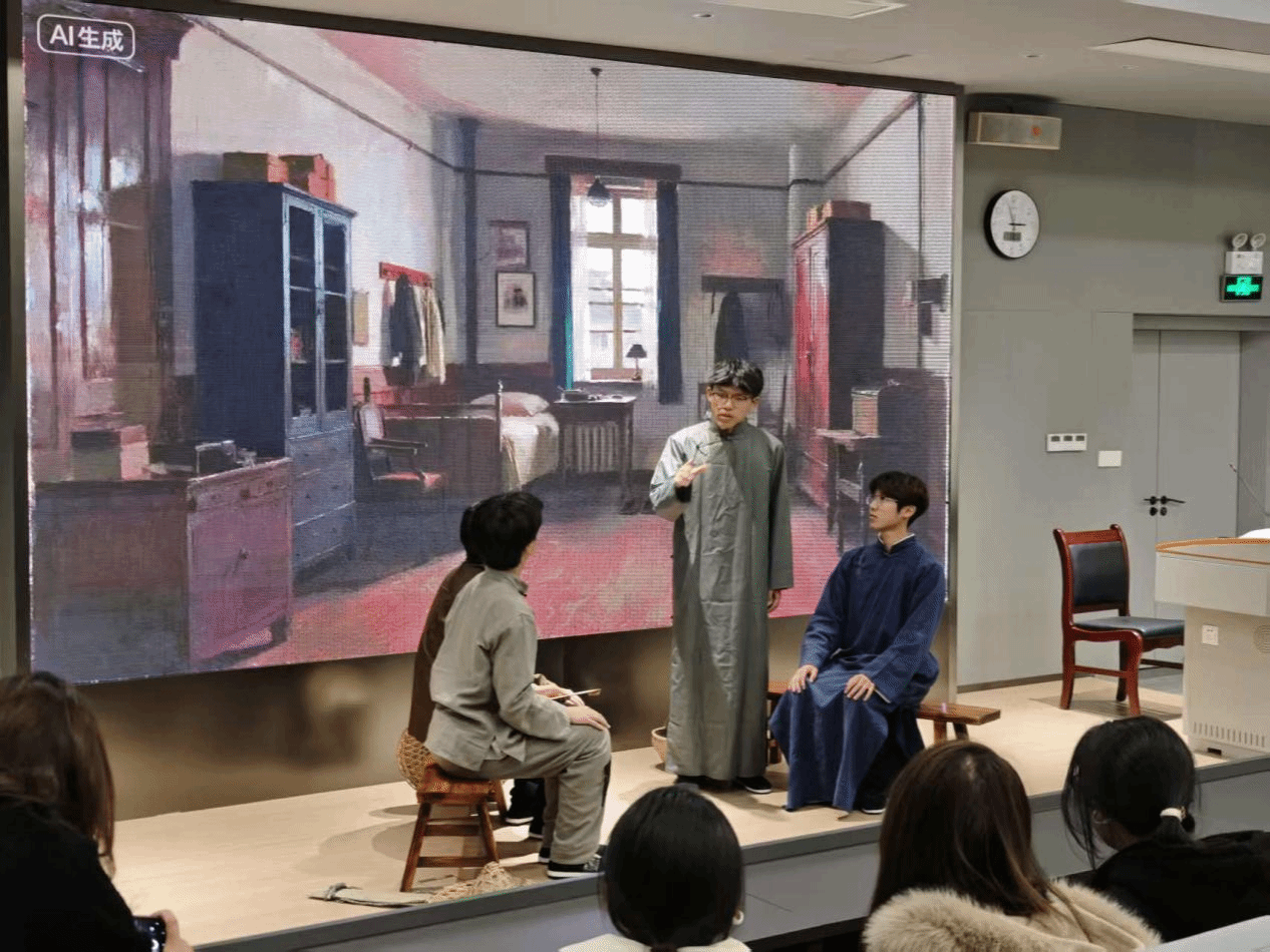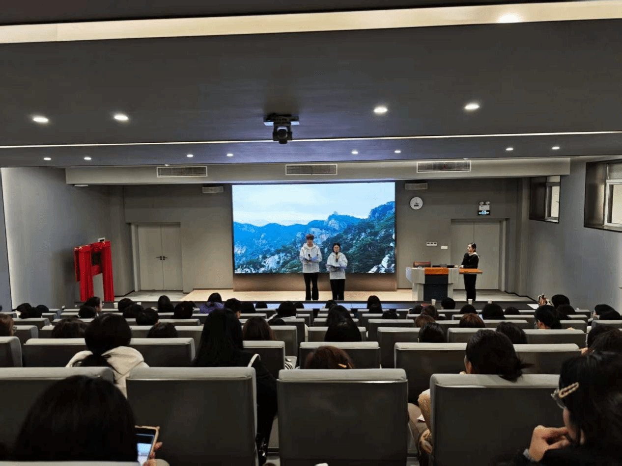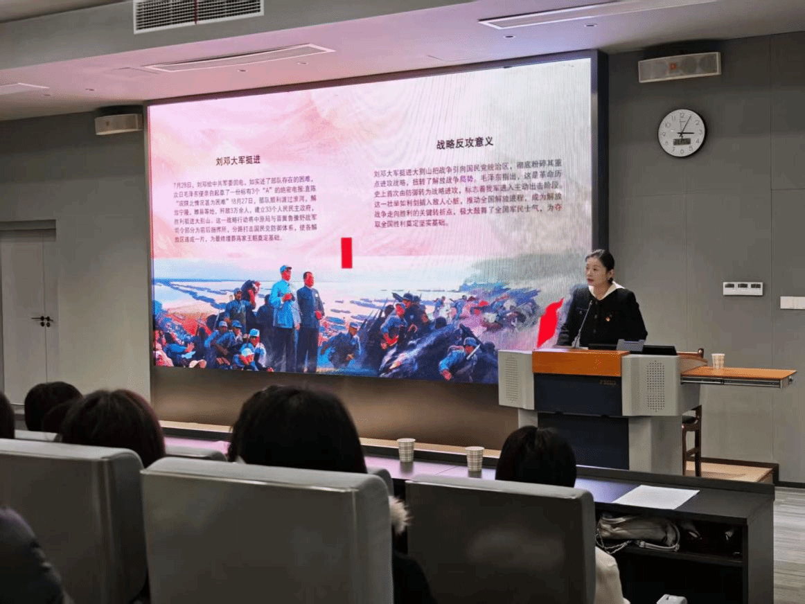 揭牌仪式后,八七会议会址纪念馆副馆长荆菁老师以《红旗漫卷大别山》为题,为师生带来一堂沉浸式思政课。课程从“大别山精神的由来”“时代光芒”“实践传承”三个维度展开,通过讲述董必武播撒革命火种、张行静英勇就义等英雄事迹,播放《大转折——千里跃进大别山》影视片段,以及集体朗诵《再见了,大别山》等形式,生动诠释“坚守信念、胸怀全局、团结奋进、勇当前锋”的大别山精神内涵。同时,荆老师结合刘名榜坚守革命根据地、“兵支书”杨愉锐扎根基层、大别山支教团14年爱心接力等当代案例,展现红色精神的传承活力,引发师生强烈共鸣。