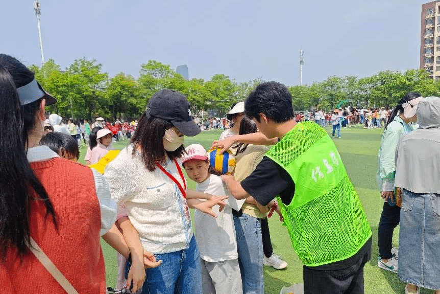 除了组织比赛,志愿者们还化身 “秩序守护者” 与 “欢乐记录者”。他们在观众区引导家长有序观赛,维持现场秩序;用手中的相机捕捉亲子间默契配合的精彩瞬间,记录下孩子们天真烂漫的笑容和家长们欣慰的神情。“看到家长和孩子一起努力完成比赛,这种温馨的画面特别让人感动,再辛苦也值得!” 志愿者张乐婷的话语道出了所有志愿者的心声。