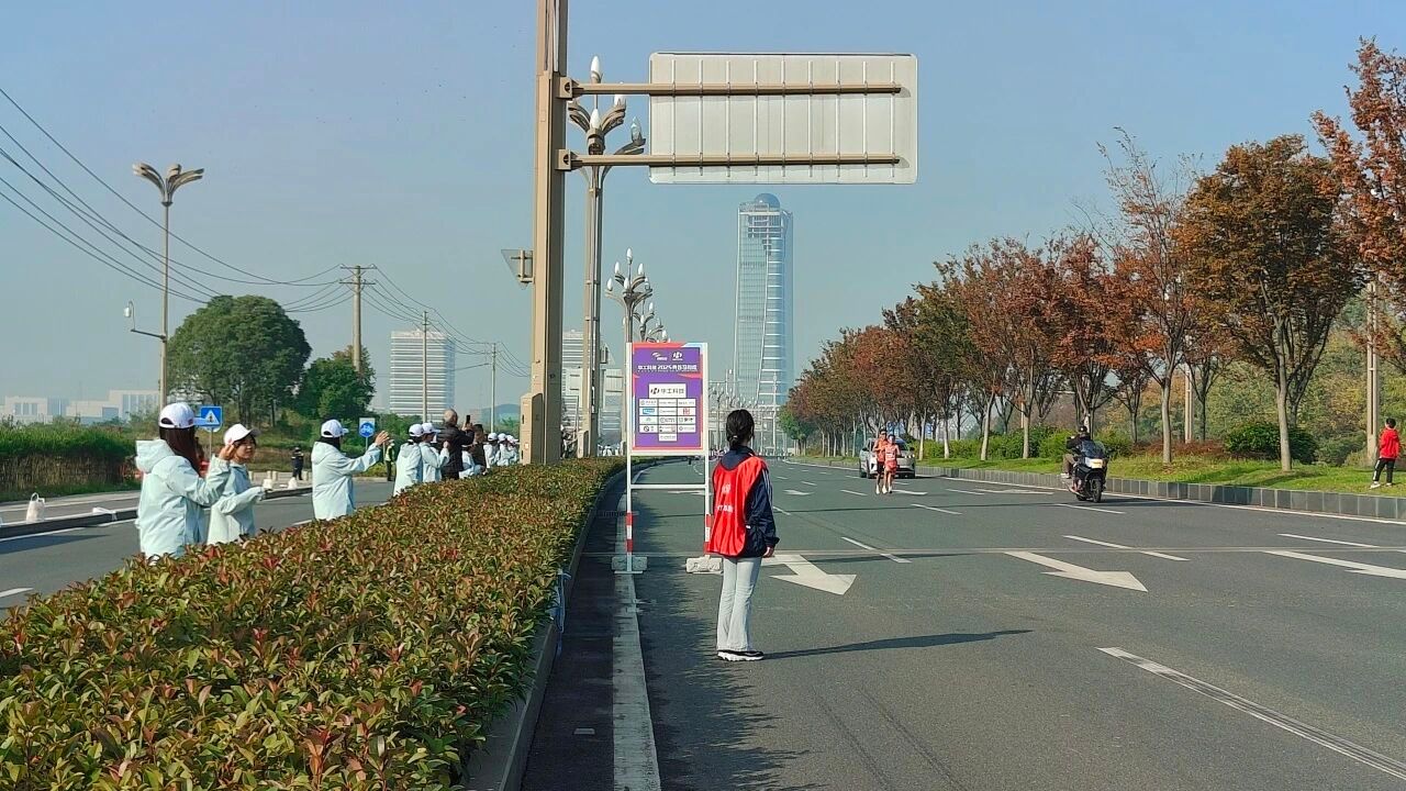 天还未亮,志愿者们便早早集结,怀着热情与责任感奔赴各个服务点位。赛道沿线的不同岗位上,他们坚守职责、默契配合,以高度专注和细致服务为参赛选手保驾护航。有的耐心提供赛事指引、解答疑问;有的主动为有需要的选手提供暖心协助,传递关怀鼓励;还有的积极营造现场氛围,用热情呐喊为选手加油。每一个忙碌的身影都充满活力,每一次真诚的微笑都传递着武汉的温情,尽显新时代青年的责任与担当。
