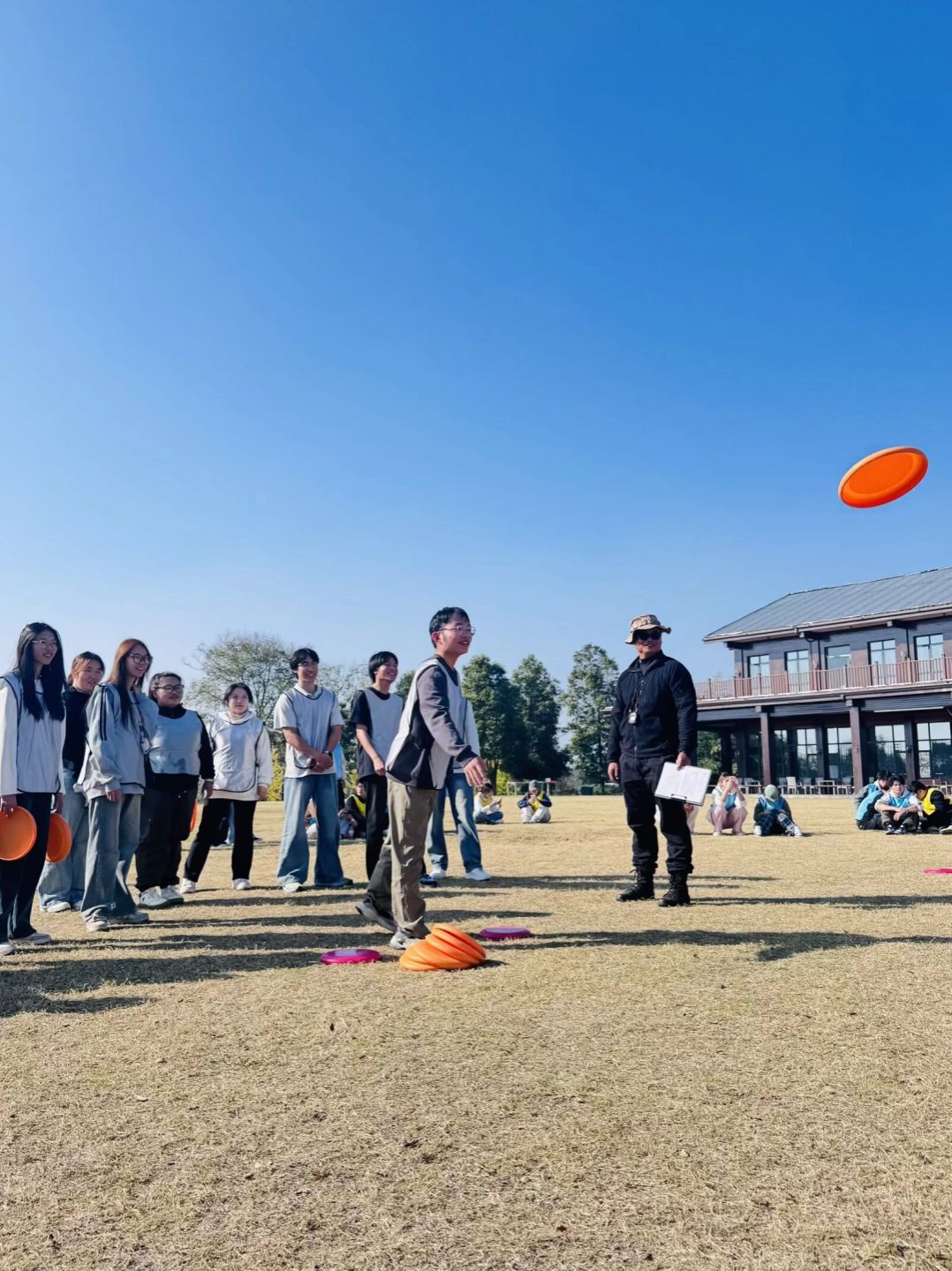 活动以“团队组建”破冰,学员们快速组队,共同创作队名与队训,“生命石”机制更强化了令行禁止的纪律意识。极限飞盘系列项目中,团队传接、等距接龙、飞盘框挑战等环节,让大家在攻防配合中体悟分工协作的重要性;躲避盘比赛里,队员们攻防兼备、默契配合,展现了“胜则举杯相庆,败则拼死相救”的团队精神。击鼓颠球、雷区取水等项目则考验着团队的统一指挥与创新思维,学员们群策群力,在有限资源下突破难题,充分诠释了集体智慧的的力量。