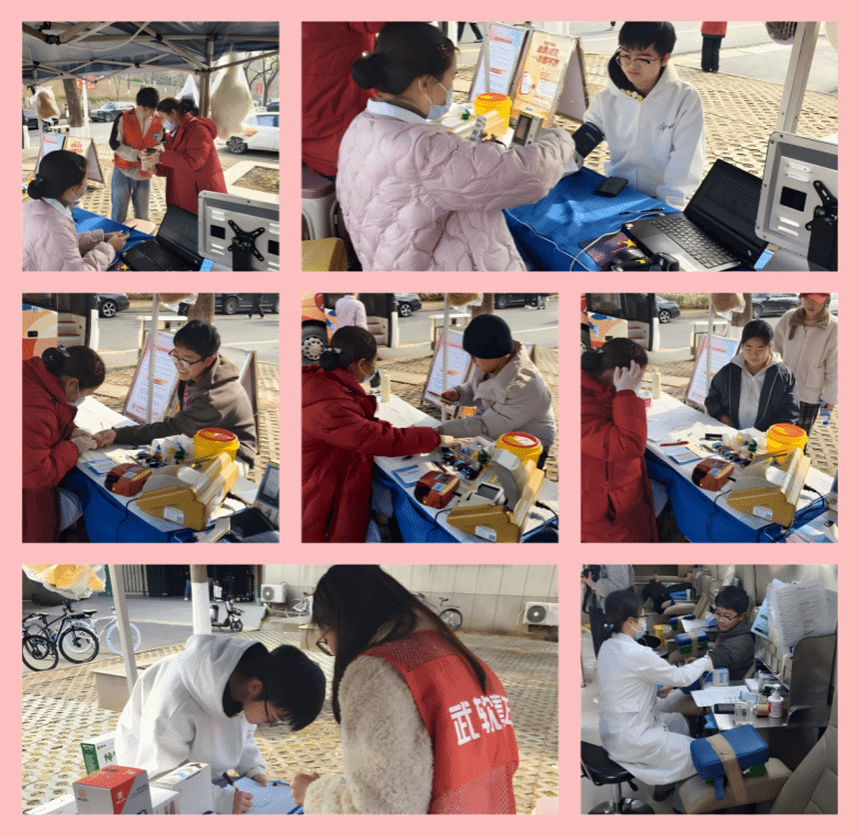 献血车前,师生们有序地排起长队,在工作人员和志愿者的引导下,依次进行信息登记、健康检查。活动现场分为登记区、体检区和采血区,每个区域都有专业人员提供服务,确保整个献血流程科学、安全、高效。在登记区,志愿者们耐心解答疑问,协助填写表格;体检区内,医护人员细致地为每位献血者进行健康筛查;采血车上,专业护士以娴熟的技术完成采血,全程关注献血者状态。