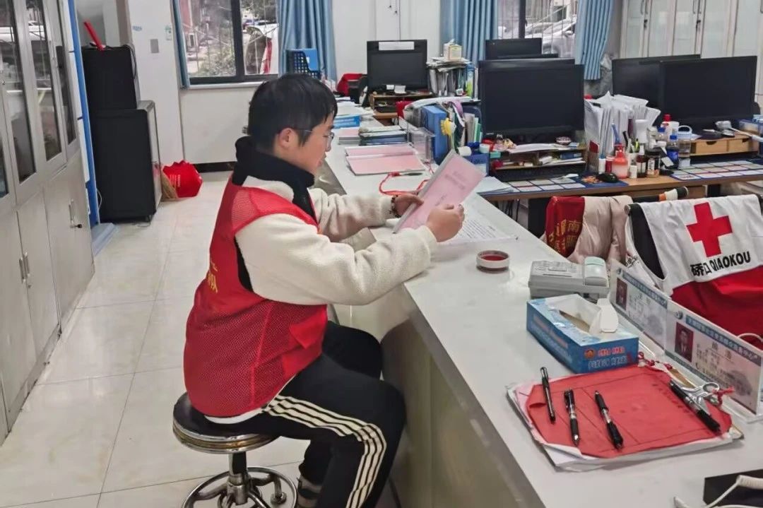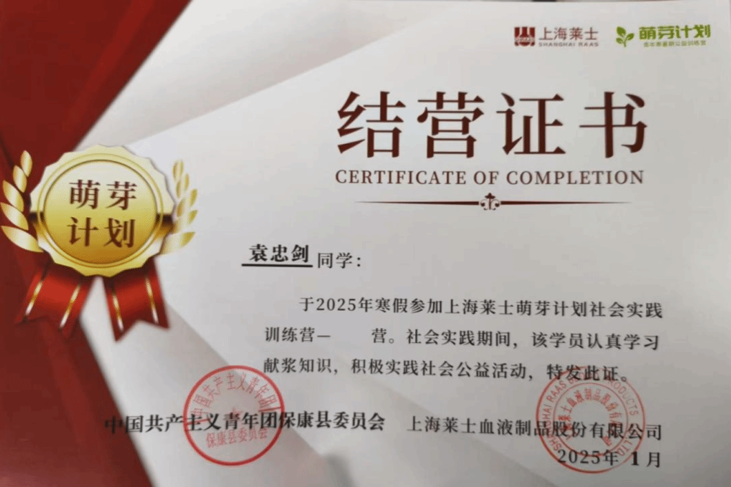 中小创 2401 班的袁忠剑同学在襄阳市保康县莱士采血站参加社会实践活动。他主要负责信息登记、引导、解答疑问以及宣传献血知识等工作。宣传献血知识的时候,袁忠剑变身成知识小达人。他拿着宣传手册,认真向市民讲解献血知识,用通俗易懂的话语阐述献血的好处和意义。面对市民的疑问,他都耐心倾听、细致解答,赢得阵阵赞许。袁忠剑同学用实际行动为家乡的医疗事业提供支持,保障家乡人民在医疗救治方面的用血需求,是大学生助力家乡基层建设的生动体现。