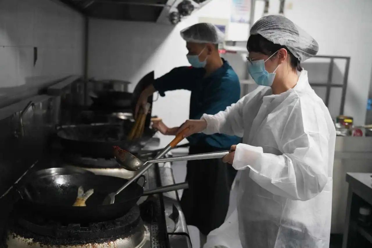 本次活动在严格遵守食堂后厨安全管理规范的前提下进行,食堂多位资深大厨亲自上阵,为同学们提供了“一对一”的专业指导。从刀工的精细技法到火候的精准掌控,从食材的搭配原理到菜肴的摆盘艺术,师傅们倾囊相授,言传身教。这种“师徒式”的现场教学,让同学们在掌握实用技能的同时,更深刻体会到了餐饮工作者严谨专注、精益求精的职业精神。