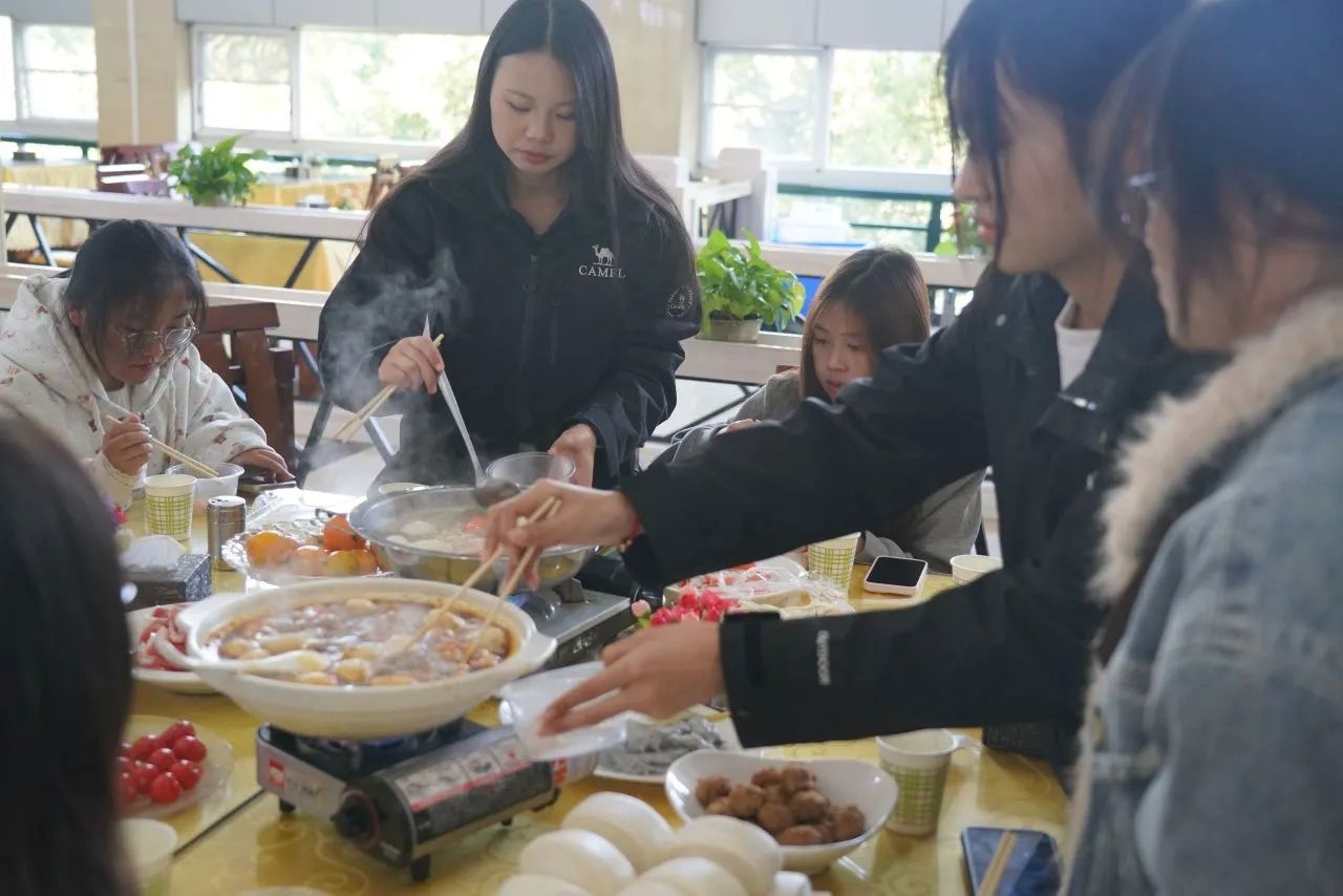 在专业厨师的保驾护航下,厨艺展示环节精彩纷呈。来自生命健康学院和信息学院的同学们带来凉拌三丝、酸辣土豆丝、青椒斩蛋等,清爽利落。大家分组协作,将刚学到的技巧现学现用,现场炒菜声、欢笑声交织,氛围热烈。